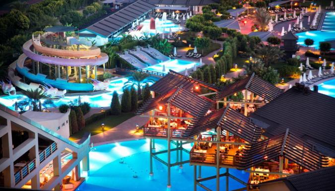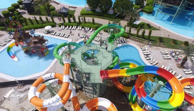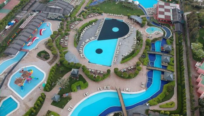 Общая площадь бассейнов составляет 8000 кв. м. Имеется 8 открытых бассейнов, 6 водных горок, джакузи и детские бассейны с 2-мя детскими водными горками. Крытый бассейн имеет площадь 300 кв. м включая открытый подогреваемый бассейн. Здесь находятся 3 джакузи с горячей водой и одна водная горка.
