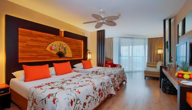 Есть свой песчаный пляж с душевой, кабинками для переодевания, лодочной станцией и пирсом. Зонты, шезлонги, матрасы, полотенца – бесплатно. На пляже можно заниматься разными видами спорта, среди которых пляжный волейбол, катание на парашюте, водных лыжах, водных мотоциклах, серфинг, виндсерфинг, катание на лодке, банане и т. д. Система Ultra All Inclusive позволяет пользоваться всеми немоторными водными видами спорта бесплатно.