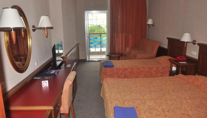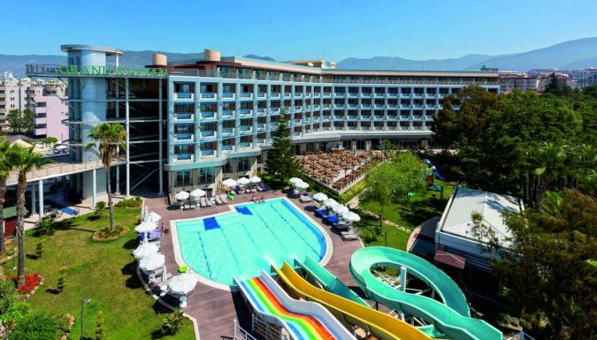 Отель расположен в 131 км от аэропорта г. Анталья,в 4км от г. Алания, на берегу моря (есть подземный переход).