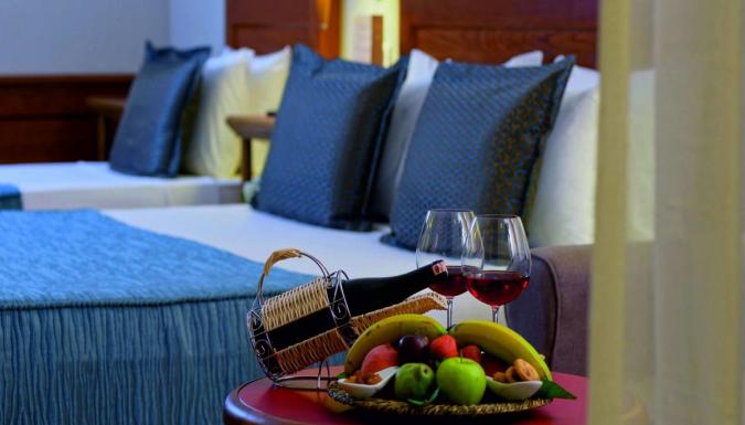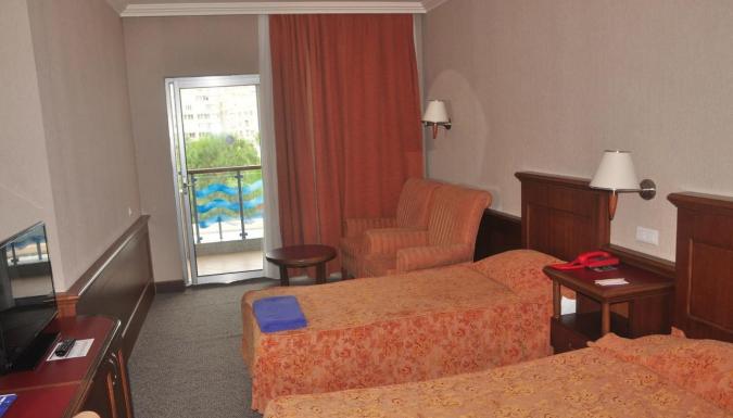 фен смена белья: ежедневно (по запросу) телефон Интернет: Wi-Fi, платно телевизор (русские каналы) мини-бар (вода и прохладительные напитки – ежедневно, бесплатно) кондиционер: центральный room service: платно ванна или душ сейф: есть (депозит) балкон электрический чайник пол: ламинат (или ковер) уборка номера: ежедневно