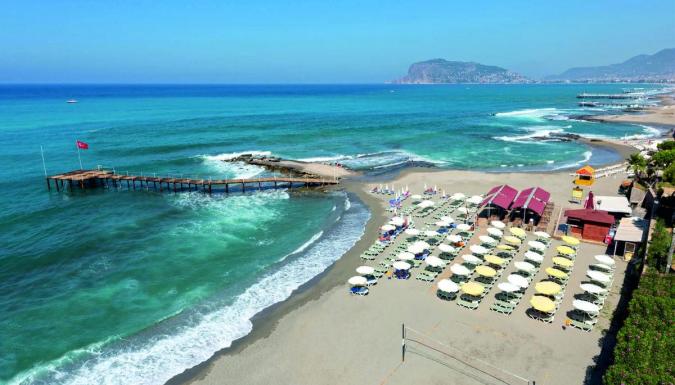 Отель с небольшой ухоженной территорией и оборудованным пляжем. Расположен в местечке Тосмур, рядом с городом Аланья. Рекомендуется для спокойного семейного отдыха с детьми.