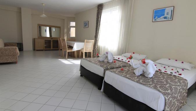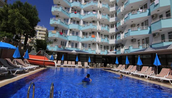 Уютный отель в районе Махмутлар, представляет собой одно семиэтажное здание. Для гостей — просторные светлые номера, открытый бассейн, питание по концепции «Все включено».