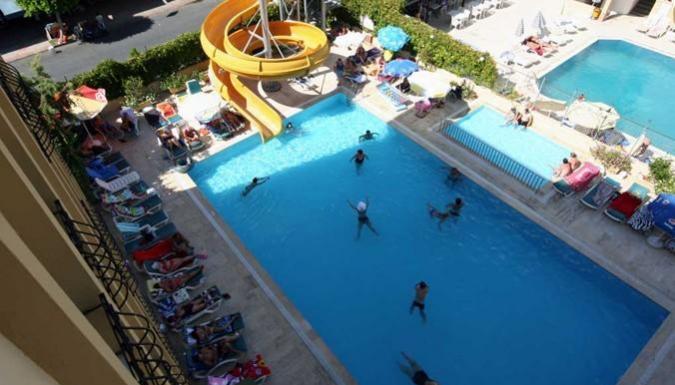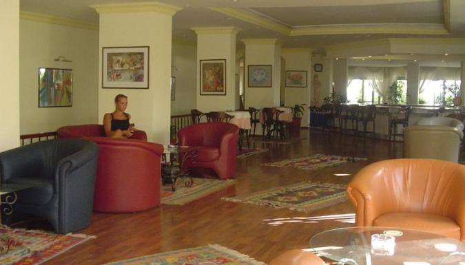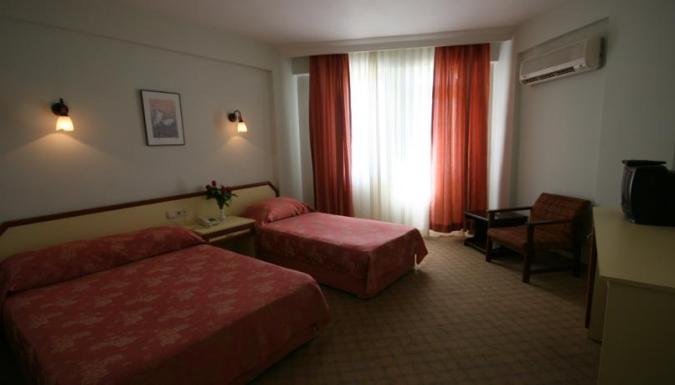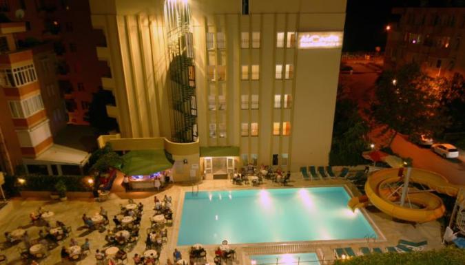 Отель состоит из двух шестиэтажных корпусов.Ресторан отеля предлагает отведать блюда турецкой кухни.