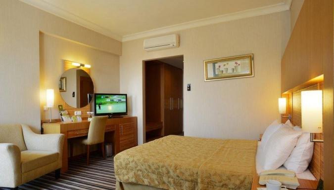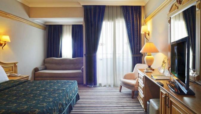 Индивидуальный и центральный кондиционер, спутниковое ТВ с российским каналом, мини-бар (вода только в день заезда), прямой телефон, интернет (платно), ванная комната, фен, сейф (платно), балкон, диван-кровать