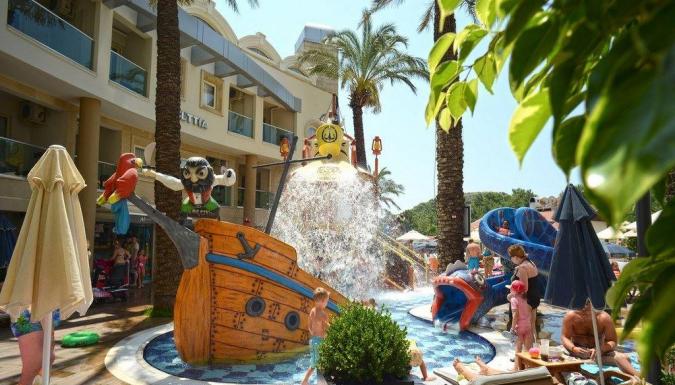 Кроватка по запросу, детская анимация, мини-диско, мини-клуб (4-12 лет), детская площадка, игровая комната, детский открытый бассейн 90 кв.м, 2 горки, детская секция в открытом бассейн у апарт-здания 10 кв.м, детское меню (обед, ужин). Для младенцев: микроволновая печь, блендер для детского питания, молоко. В ресторане предоставляются детские стулья, детская коляска (платно, по резервации)