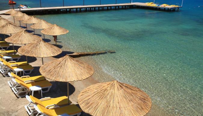 Отель расположен в 8 км от центра г. Бодрум. Аэропорт г. Бодрум находится в 25 км от отеля. Последняя реновация проводилась в 2011 году. Состоит из основного 3-этажного здания и 2-этажных бунгало. Отель размещает гостей с ограниченными физическими возможностями. Собственный песчано-галечный пляж находится рядом с отелем. Протяженность пляжа составляет 100 м. Шезлонги, зонтики, матрацы, пляжные полотенца - бесплатно. Душ, спасатель на пляже, кабинка для переодевания. Заход в море - песок, галька, пирс. Бар на пляже.