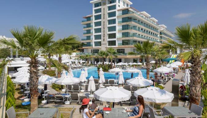 Отель расположен в г.Сиде, в 12 км от п. Манавгат. Аэропорт Анталии находится в 60 км от отеля. Отель был открыт в 2015 году. Общая площадь территории составляет 9 000 кв.м. Состоит основного 5-этажного здания, 2 блока. Для удобства имеется 4 лифта. Отель размещает гостей с ограниченными физическими возможностями. Собственный песчаный пляж находится в 100 м от отеля. Протяженность пляжа составляет 50 м. Бар на пляже, душ, кабинки для переодевания, спасатель на пляже. Шезлонги, зонтики, матрацы, пляжные полотенца - бесплатно. Заход в море - песок.