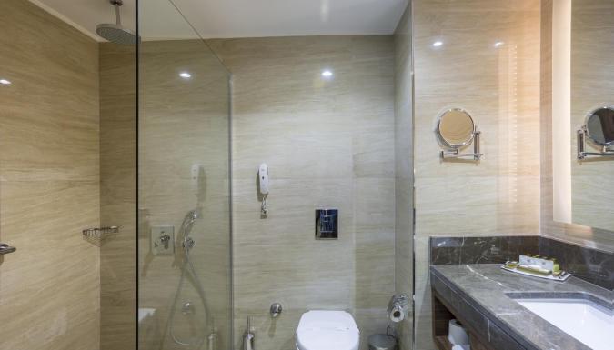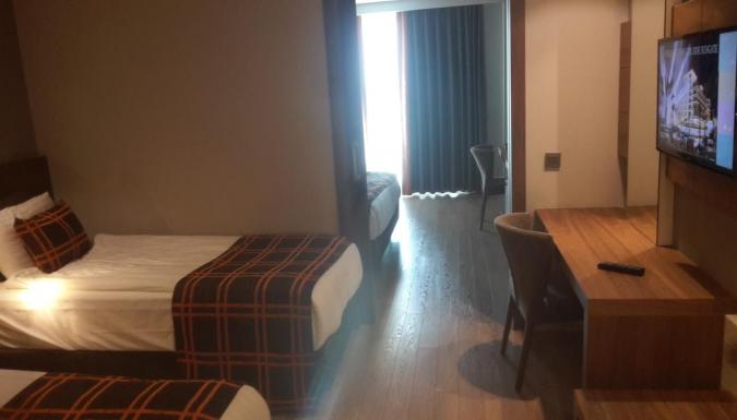 Центральный кондиционер (работает в зависимости от погодных условий), спутниковое ТВ с русским каналом, мини-бар (вода и прохладительные напитки, ежедневное пополнение), прямой телефон, душ, фен, сейф (платно), балкон, доп раскладная кровать по запросу.