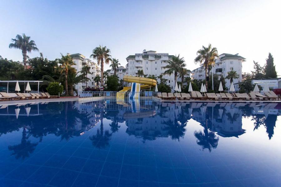 Отель располагается на прекрасном Аланийском побережье, где гости могут полностью насладиться своим отдыхом. Отель представляет собой 6-этажное здание со всеми удобствами, также отель предоставляет услуги конференц-зала.