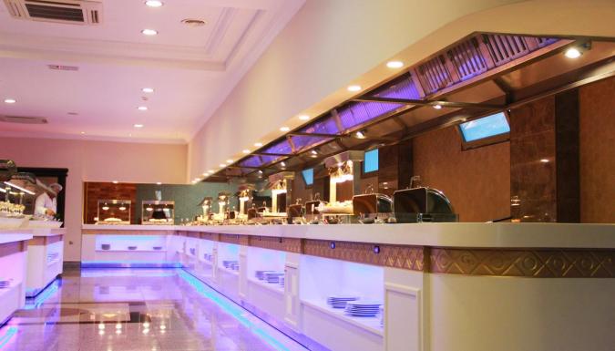 открытый бассейн, 600 кв.м, 3 горки крытый бассейн основной ресторан на 600 чел. A’la Carte ресторан (международный) лобби-бар, бар у бассейна, кафетерия интернет-кафе (платно) обмен валюты Wi-Fi (бесплатно, в лобби) прачечная парковка AI - все включено В концепцию входит: завтрак, поздний завтрак, обед, ужин - шведский стол, ночной суп, диетическое и вегетарианское меню, мороженое (3 дня в неделю), местные алкогольные и безалкогольные напитки (10.00 - 00.00). Услуги аля карт ресторана - платно, по резервации. Все импортные напитки, напитки в бутылках, свежевыжатые соки, обслуживание в номер - платно.