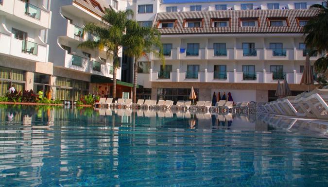 Отель в 55 км от аэропорта г. Анталья, в 500 м от центра г. Кемер, в 250 м от моря. Собственный пляж отеля расположен в 700 м от отеля.