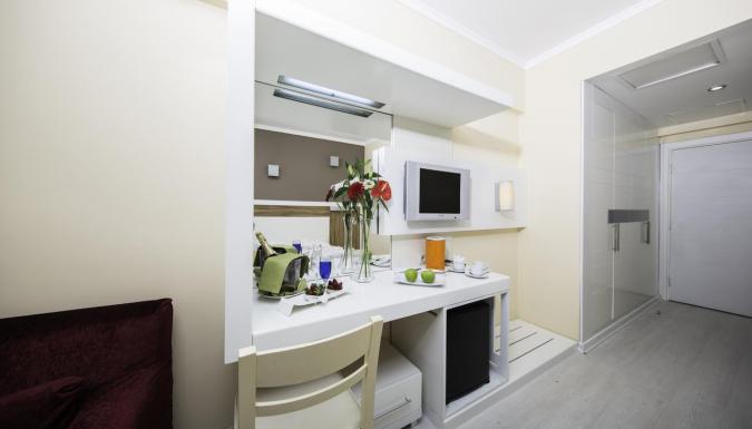 ванна или душ мини-бар бесплатно (пустой) room service: платно уборка номера: ежедневно фен телефон пол: паркет (eco room - плитка) сейф: в номере, платно телевизор (русские каналы) балкон кондиционер смена белья: 3 раза в неделю