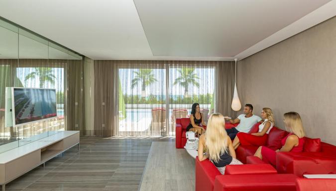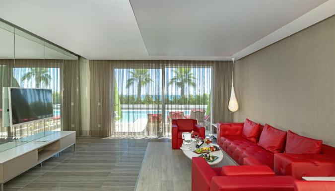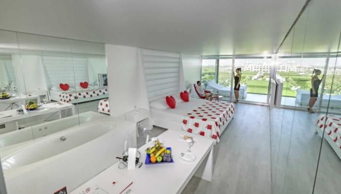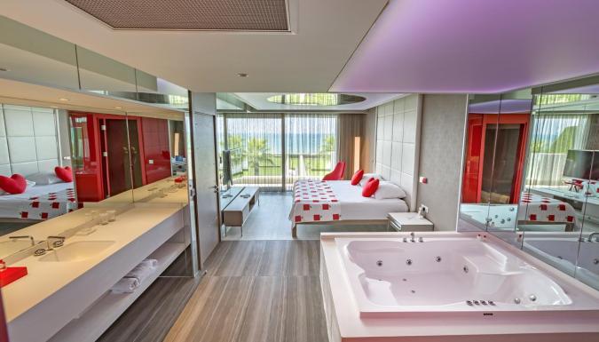 Центральная система кондиционирования (зависит от погодных условий, работает в определенные часы), рабочий стол «Дизайн», терапевтическая кровать на балконе, мини-бар с водой, прохладительными напитками и пивом (ежедневно пополняется, бесплатно), макси-бар (платно), плазменный телевизор (диагональ 106 см), LED-освещение, электрический чайник и набор чая и кофе, сейф (бесплатно), прямой телефон, Wi-Fi (бесплатно), cпутниковое ТВ, джакузи (кроме Handicap Rooms), душевая кабина с паровым эффектом для 2 чел., тапочки / халат (по запросу бесплатно), меню подушек (платно).