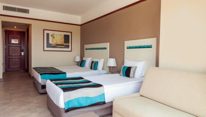 Центральный кондиционер, спутниковое ТВ с российскими каналами, мини-бар (прохладительные напитки - пополнение 1 раз в 3 дня), прямой телефон, интернет (платно), душ, фен, тапочки, сейф, балкон, дополнительная раскладная кровать (по запросу).