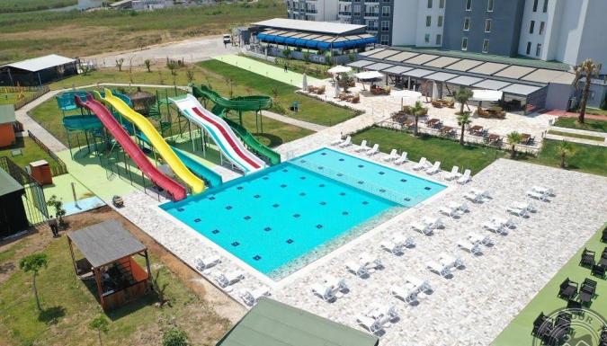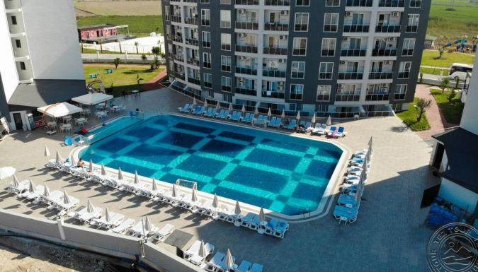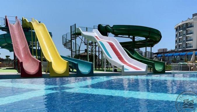Отель в 25 км от аэропорта г. Анталья, в 15 км от центра г. Анталия, в 1000 м от собственного пляжа. Собственный песчано-галечный, в 1 км от отеля, протяженность 30 м. Трансфер предоставляется каждые 15 минут с 08:00 до 19:30 ​Для гостей: снэк-бар, зонтики, шезлонги, полотенца. Отель предлагает питание по системе "Ultra All Inclusive".