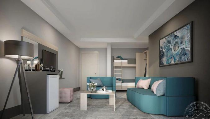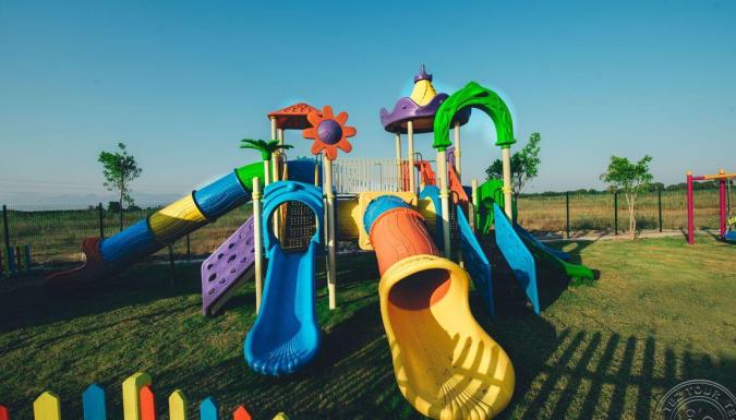 - детский клуб - анимация на русском языке - 2 открытых бассейна (глубина 35 см) - детское меню в главном ресторане - стулья в ресторане​ - игровая площадка - инвентарь: горшок, коляска (депозит), кроватка в номере