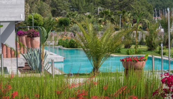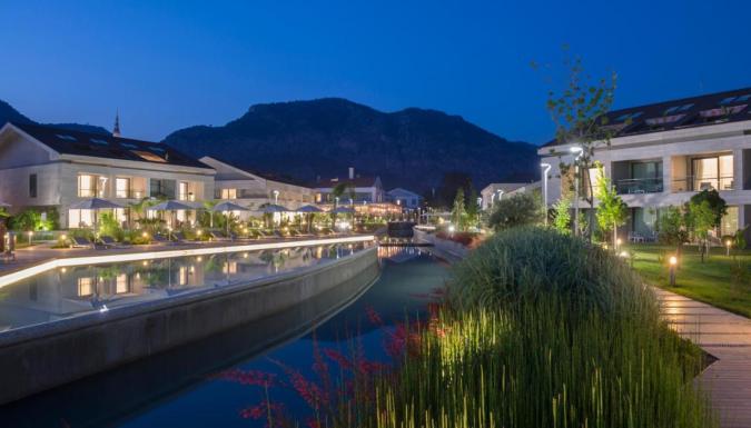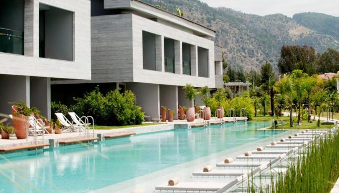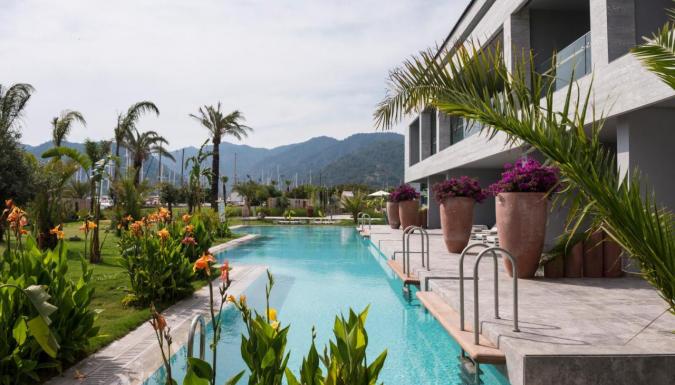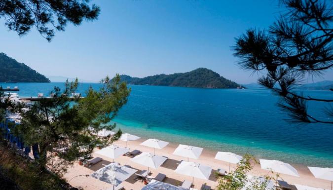 Отель расположен в уединенной бухте, в п. Гёджек, в 32 км от п. Фетхие. Аэропорт Даламан находится в 25 км от отеля (20 минут езды). Отель был открыт в 2001 году, последняя реновация проводилась в 2014 году. Общая площадь территории составляет 16 000 кв.м. Состоит из десяти 3-этажных блоков с лифтами. Отель размещает гостей с ограниченными физическими возможностями. Собственный песчаный пляж находится в 800 м от отеля, через дорогу. Протяженность пляжа составляет 200 м. Курсируют гольф-кары до пляжа, бесплатно. Шезлонги, зонтики, матрацы, пляжные полотенца - бесплатно. Заход в море - песок, деревянный пирс. Кабинки для переодевания, душ, спасатели на пляже, бар. Пляжные павильоны - платно (бесплатно для сьютов).