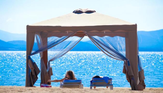 Собственный песчано-галечный пляж находится рядом с отелем.