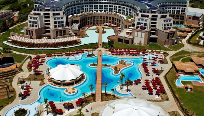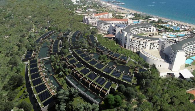 Отель в 27 км от аэропорта и в 35 км от центра г. Анталья, в 2,5 км от поселка Кадрие, на берегу моря. Построен в 2013 году, общая площадь 120 000 м2.