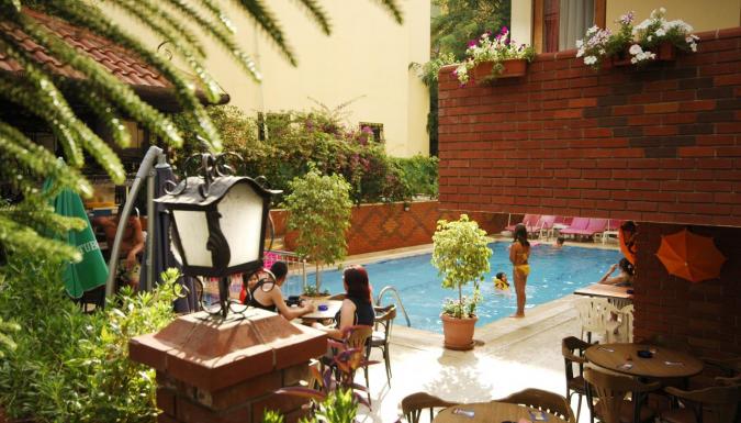 Отель расположен в 2 км от центра г. Алания. Аэропорт Анталии находится в 130 км от отеля, аэропорт Газипаша в 40 км. Отель был открыт в 1996 году, последняя реновация проводилась в 2014 году. Общая площадь территории составляет 1 000 кв.м. Состоит из основного 5-этажного здания с лифтом. Отель не размещает гостей с ограниченными физическими возможностями. Муниципальный песчаный пляж Клеопатра находится в 70 м от отеля, через дорогу. Шезлонги, зонтики, матрацы - платно, пляжных полотенец нет. Заход в море - песок.