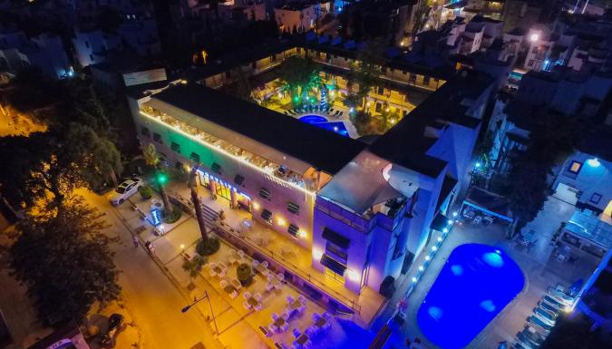 Отель расположен в п. Гюмбет, в 3 км от центра г. Бодрум. Аэропорт г. Бодрум находится в 35 км от отеля. Рядом стоящие отели: Magnific Hotel.