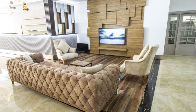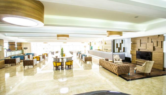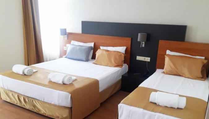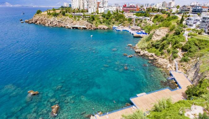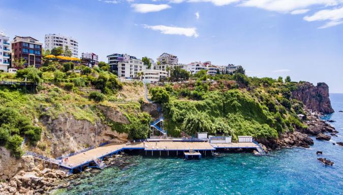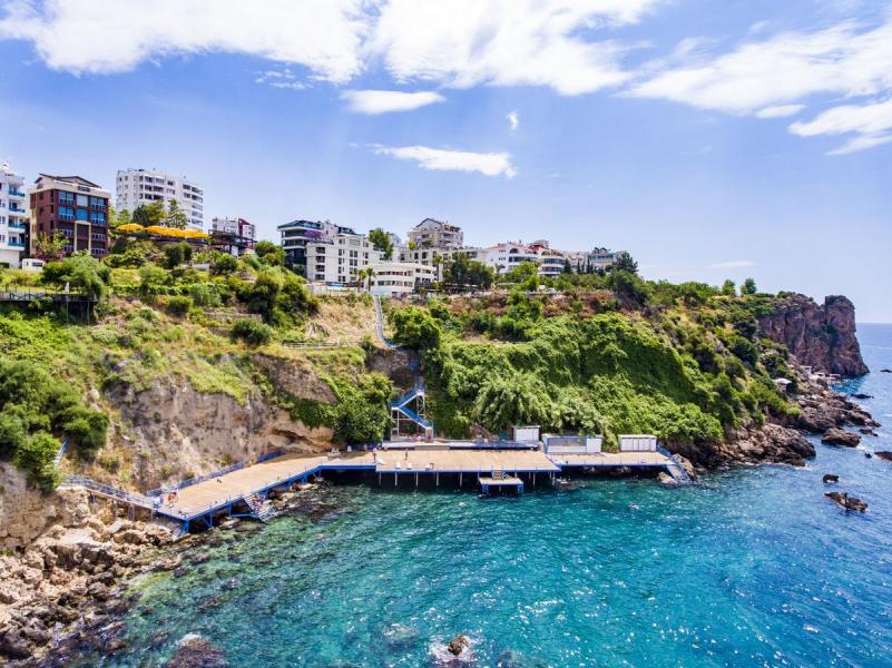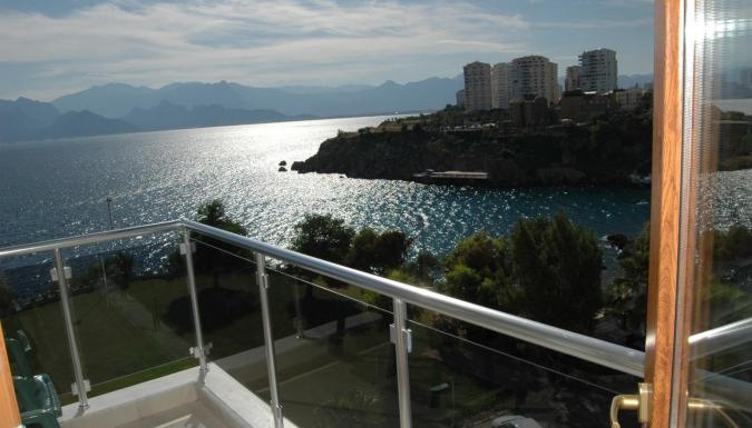 Отель в 15 км от аэропорта, в 5 км от центра г. Анталья, на высоком берегу моря.