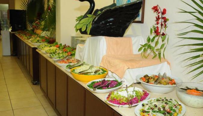 Ресторан-бар с открытой и закрытой секциямина 250 человек предлагает богатый выбор блюд турецкой и международной кухни, разнообразные напитки; бар у бассейна предлагает большой выбор напитков,коктейлей, закусок.