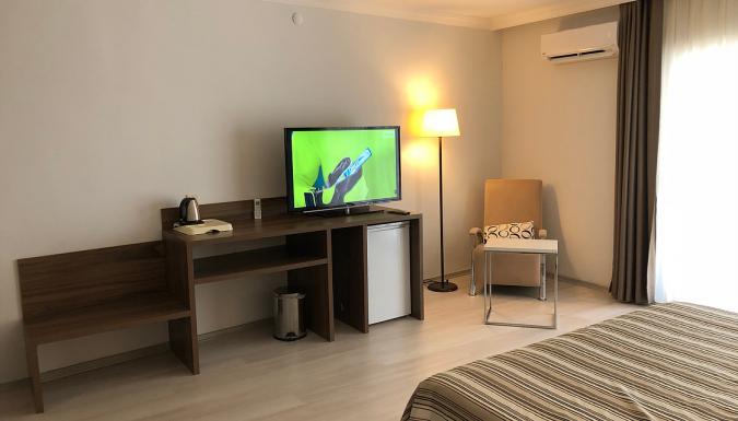 Кондиционер, мини-бар, кофеварка и/или чайник, утюг и гладильная доска (по запросу), меблированный балкон или патио, ванная комната, туалетные принадлежности, фен, телевизор, кабельное/спутниковое телевидение, телефон, бесплатная бутилированная вода, сейф.