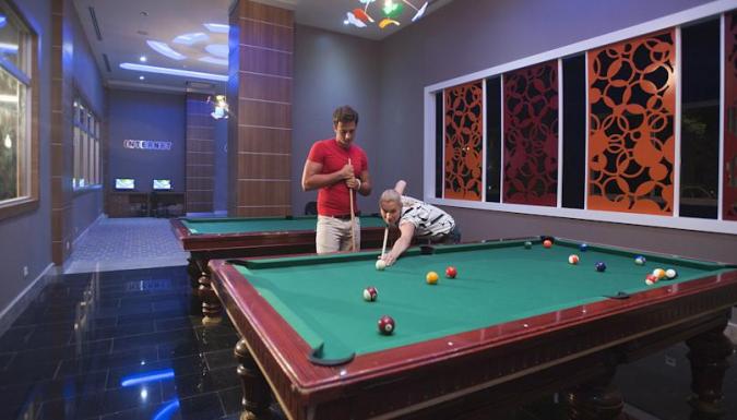 3 открытых бассейна; крытый бассейн с подогревом; водные горки; боулинг; бильярд; игровые автоматы; водные виды спорта; тeннисный корт; пляжный волейбол; настольный теннис; фитнесс-зал; гимнастика, аэробика, стрэтчинг; дартс; пилатес и йога; мини-футбольное поле