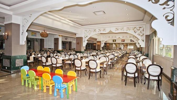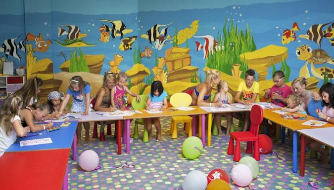 два детских бассейна; водные горки. мини-клуб для 4 12 лет (площадка для игр с навесом, детские фильмы); комплекс для подростков для 13-17 лет (игровая площадка, вечеринки, конкурсы); услуги няни; детские кроватки; детские стульчики.