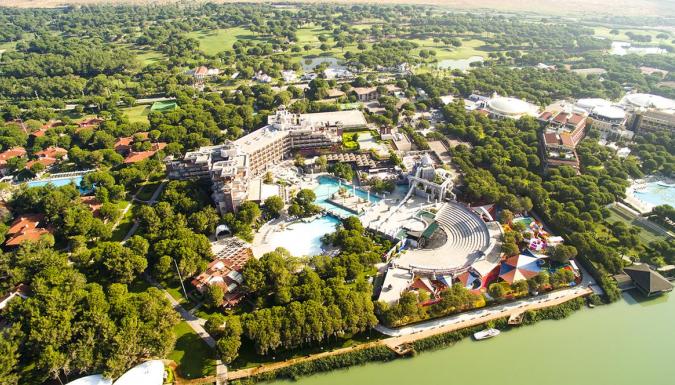 Отель открыт в 2000 году. Площадь отеля 135 000 кв.м. Состоит из одного четырехэтажного корпуса с лифтами и двенадцати бунгало-вилл. У отеля собственный песчаный пляж протяженностью 400 м; зонтики, шезлонги, матрасы, полотенца - бесплатно. На пляже душ и кабинки для переодевания. Между отелем и пляжем речка, проход к пляжу через мост; два пирса. На территории отеля бесплатно; сауна, тренажерный зал, турецкая баня, массаж (предварительная запись), анимация (на разных языках мира), теннисных кортов с освещением, закрытый бассейн (116 м), 3 открытых бассейна (900м970 м1200 м), 2 открытых детских бассейна (площадь 45/ 31 м – глубина –35 см19/16м – глубина – 35 см), аквапарк «водный мир»: 3 горки – «камикадзе» (протяженность 57,82 м, наклон – 66%),«труба» (55,96 м, наклон - 22%) «крутые виражи» (86,14 м,наклон - 13%), развлекательные игры, вечером-шоу программы мюзиклы, кабаре, живая музыка, дискотека, аэробика, аренда велосипедов, настольный теннис, стрельба из лука, мини гольф, мини футбол, бильярд, волейбол, баскетбол, водное поло, боулинг виндсерфинг, водные лыжи, каноэ, катание на банане, мини-клуб для детей (от 4 до 12 лет) услуги «baby sitter», услуги прачечной и гладильной, 4 панорамно-обзорных лифта для детей, 2 детских бассейна, детский сад, водные горки, мини-клуб, няня, детская площадка. 6 ресторанов (основной ресторан, а также: китайский, османский, итальянский, французский, мексиканский), 9 баров, снек-бар, 9 конференц-залов, торговый центр, парикмахерская, салон красоты, прачечная, химчистка. Отели, расположенные рядом: Gloria Golf Resort, Nobilis Golf Club & Villas.