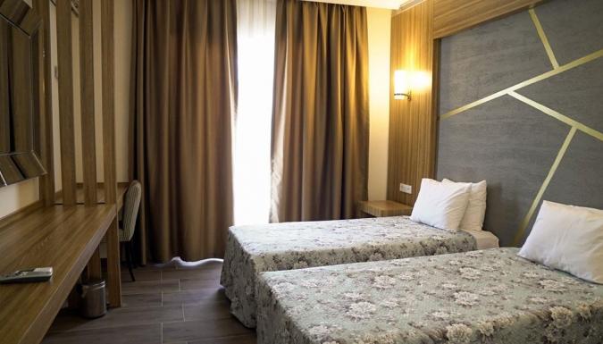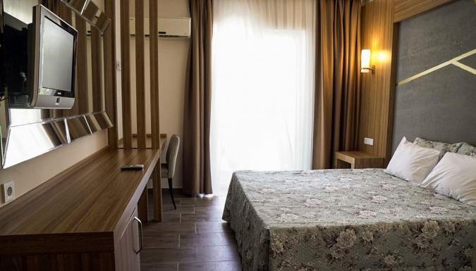 Небольшой, уютный отель с открытым бассейном, двумя водными горками, предлагает размещение в комфортабельных номерах, ресторан, 2 бара, вкусное питание, а до пляжа доставит отельный шаттл-бас.