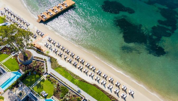 Пляж: Собственный песчано-галечный пляж находится в 200 м от главного здания отеля.