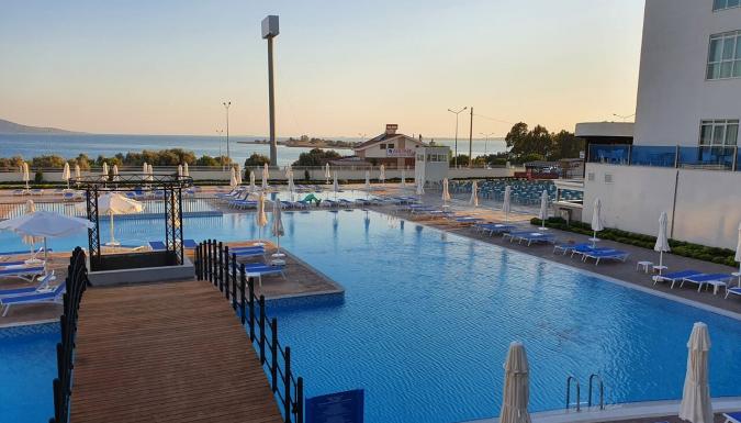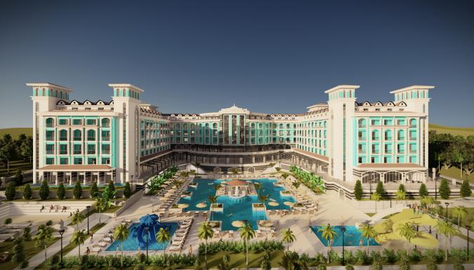 Прочие услуги Wi-Fi (бесплатно, на территории) прачечная вызов врача парковка Бизнес-услуги 4 конференц-зала, 50, 50, 170 и 1100 кв.м КОНЦЕПЦИЯ ПИТАНИЯ UAI - ультра все включено 24 часа В концепцию входит: завтрак, обед и ужин – шведский стол, закуски и сладости в определенные часы, диетическое и вегетарианское меню, безглютеновое и безлактозное меню, местные алкогольные и безалкогольные напитки. Инфраструктура 2 открытых бассейна, 400 и 110 кв.м 5 водных горок крытый бассейн, 270 кв.м (подогрев по погодным условиям) основной ресторан на 1100 чел. снэк-ресторан 4 аля карт ресторана (2 турецких, рыбный, итальянский), платно 5 баров афмитеатр ТВ-салон