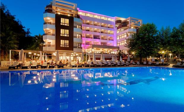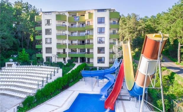 Отель, расположенный через дорогу от пляжа, предлагает своим гостям размещение в комфортабельных номерах, открытые бассейны, водные горки, разнообразное питание.