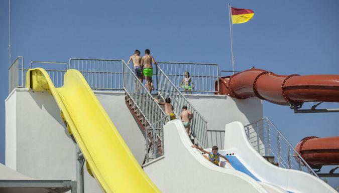 - Бассейн у отеля, горки