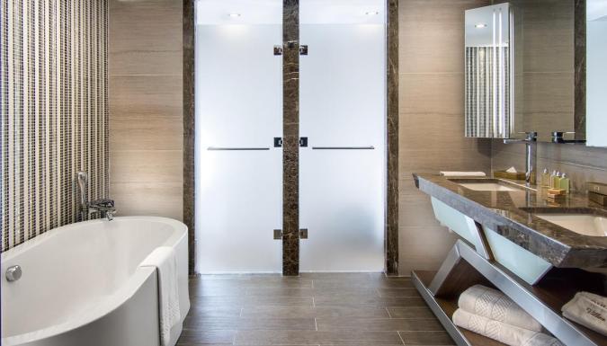 Индивидуальный кондиционер, температурный сенсор, мини-бар (бесплатно), спутниковое телевидение, музыкальный канал, прямой телефон, Wi-Fi (бесплатно), ванна/душ, зеркало для макияжа, фен, сейф, терраса, весы, халат/тапочки, банные принадлежности.