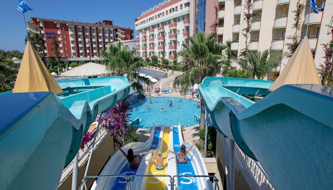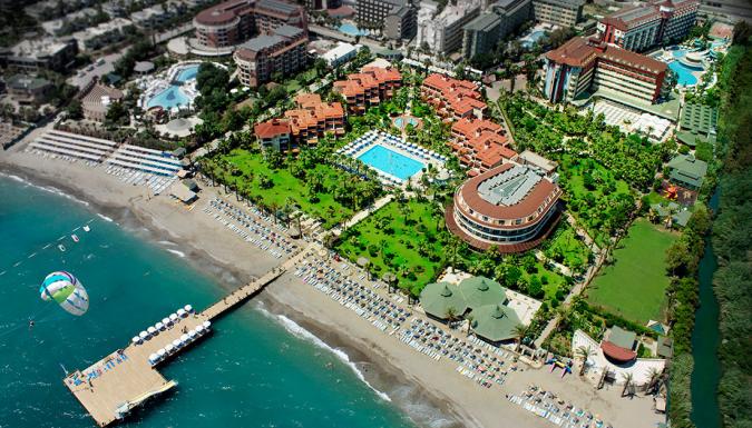 диетическое меню Интернет-кафе платно спа-центр парикмахерская бары: 6 крытые бассейны: 1 конференц-залы: 2 (на 100-400 чел) вегетарианское меню Wi-Fi бесплатно (в лобби и на территории) рестораны: 1 (основной) рестораны a la carte: 2 (османский, итальянский по предварительной записи, за неделю проживания посещение одного ресторана- бесплатно / 15.05-30.09) прачечная бассейны: 2 (открытые) у бассейна зонтики, шезлонги, матрасы: бесплатно у бассейна полотенца: бесплатно (замена 3 раза в неделю) кабинет врача водные горки: 5 (2 со спуском в море) магазины