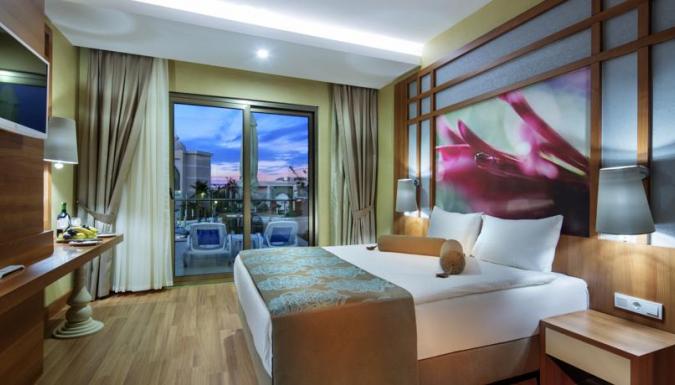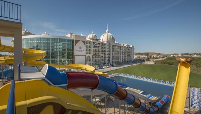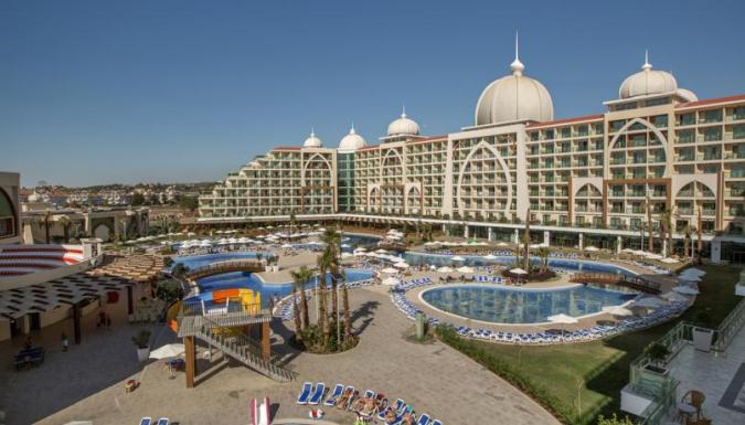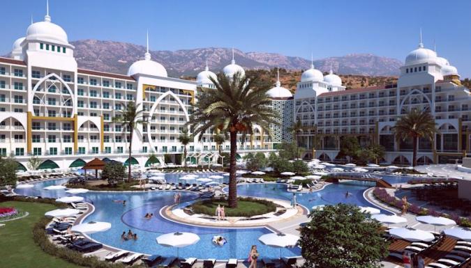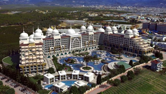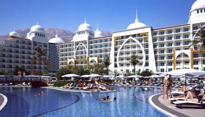 Большой отельный комплекс в курортном поселке Тюрклер. Предлагает гостям комфортный отдых на солнечном песчаном берегу. К услугам отдыхающих — просторные номера, бассейны, водные горки. Созданы условия для отдыха с семьей.