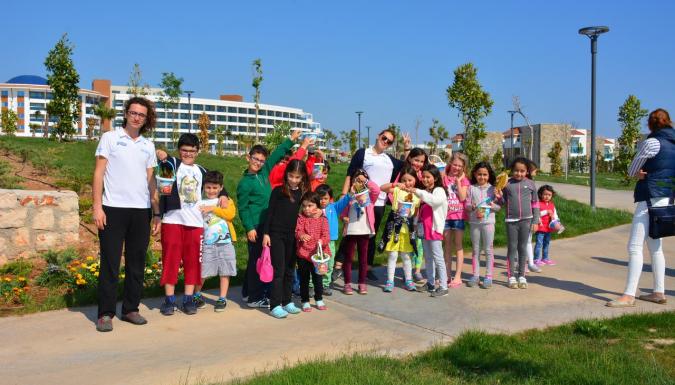 Кроватка (по запросу), детская анимация на русском языке, мини-диско, мини-клуб (4-12 лет), детская площадка, игровая комната, детский бассейн, 500 кв.м, 11 горок, в главном ресторане детские стулья, детский буфет, няня (платно, по резервации).