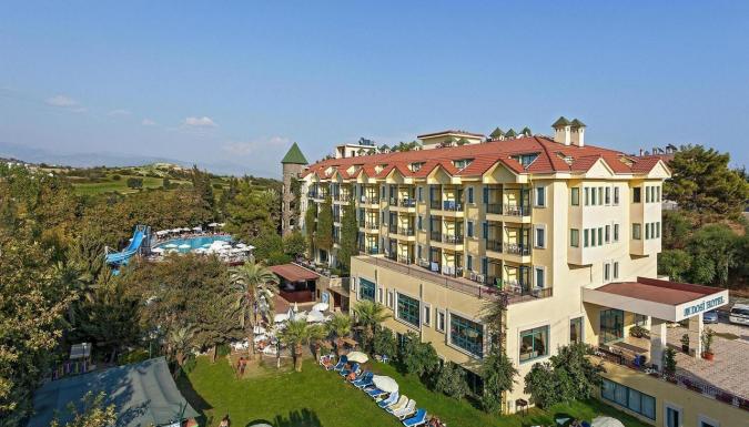 Отель с небольшой территорией в 3 км от старого города Сиде. Частный пляж, курсирует шаттл, два больших бассейна, условия для отдыха с детьми. Хорошее соотношение цены и качества.
