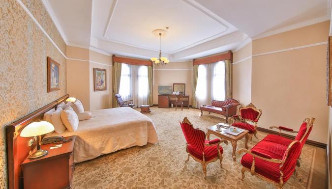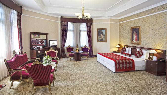 Отель занимает историческое здание в византийском стиле в самой центральной части Стамбула. В роскошных номерах сохранено очарование старины. В распоряжении гостей крытый бассейн, рестораны и бары, фитнес и SPA-центры.