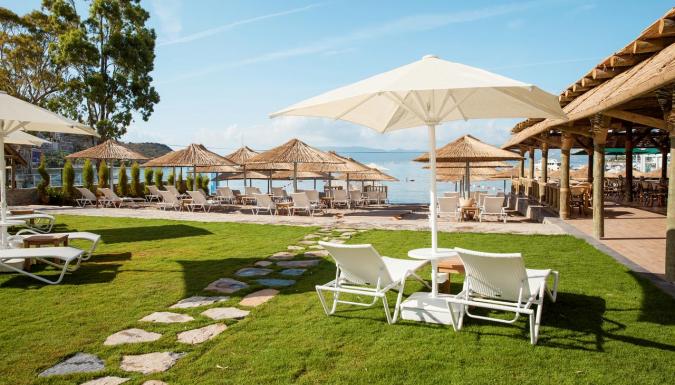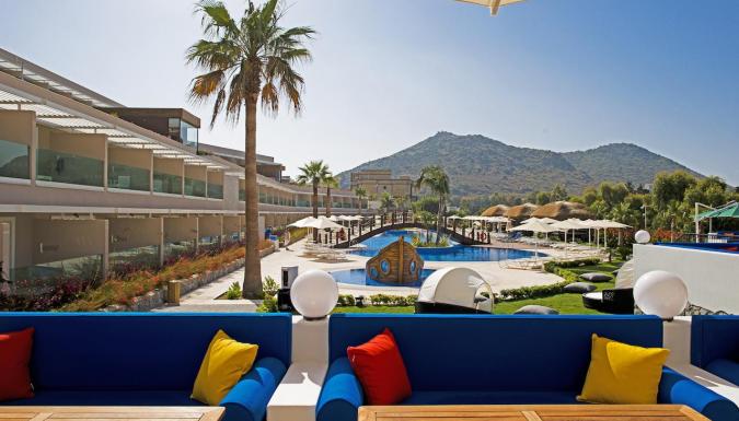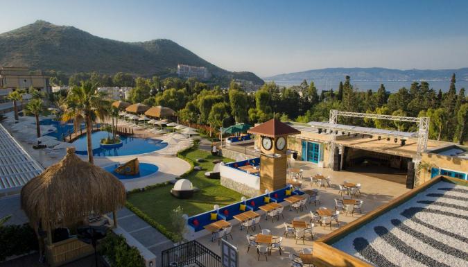 Современный отель с частным пляжем на Эгейском море. Для гостей — рестораны, бары, бассейны для взрослых и детей, водные горки, спа-услуги. Разнообразное питание по концепции «ультра всё включено». Для спокойного семейного отдыха.