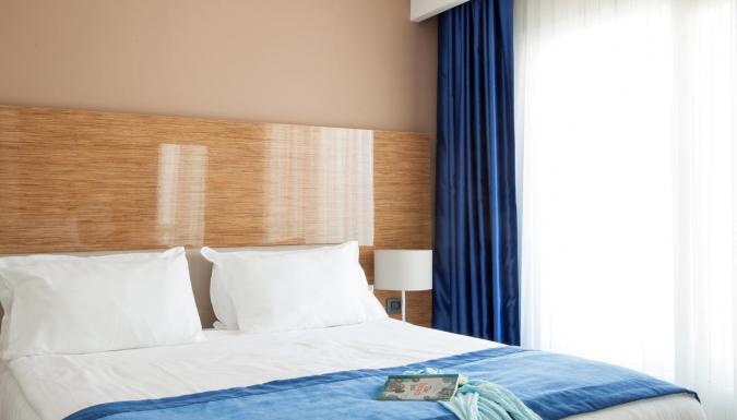 смена белья: 3 раза в неделю Wi-Fi, бесплатно телевизор уборка номера: ежедневно душ кондиционер русских каналов: 1 мини-бар бесплатно (вода – пополняются ежедневно) керамическая плитка на полу сейф: в номере, бесплатно фен телефон балкон или французский балкон (или терраса)