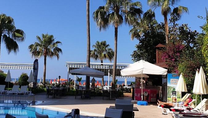 Отель расположен в 1 км от центра г. Алания. Аэропорт г.Анталия находится в 125 км от отеля, аэропорт г.Алания-Газипаша в 45 км. Отель был открыт в 1995 году, последний ремонт проводился в 2018 году. Песчаный пляж Клеопатра находится в 10 м от отеля. Шезлонги, зонтики, матрацы - платно, пляжных полотенец нет. Заход в море - песок. Душ, спасатель на пляже.