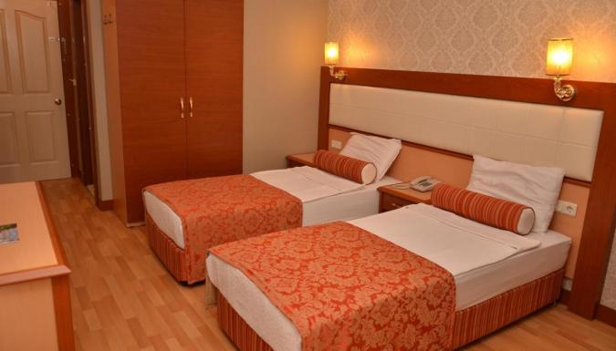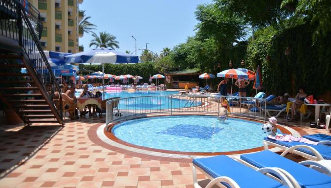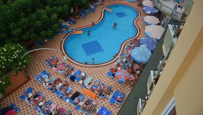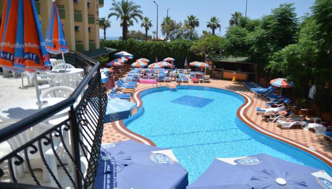 Отель на окраине города Алания, через дорогу от пляжа Клеопатра. Компактная территория с взрослым и детским бассейнами, питание по системе AI. Для бюджетного отдыха всей семьей.