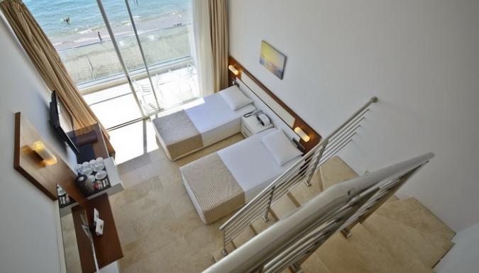 Отель на берегу моря, в поселке Авсаллар, рядом с песчаным пляжем. Компактная территория, красивые виды. Для спокойного семейного отдыха с детьми.