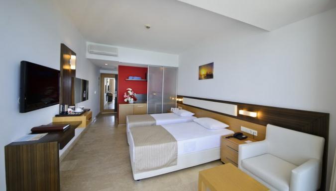 Четырехзвездочный курортный отель типа "все включено" располагает собственным песчаным пляжем на берегу Средиземного моря и номерами с балконом и кондиционером. К услугам гостей хорошо оборудованный оздоровительный клуб и открытый бассейн. Инфраструктура отеля: В отеле есть Конференц-зал (на 60 чел), Супермаркет, Ювелирный магазин, Бутик, Кожаный магазин и Агентство недвижимости