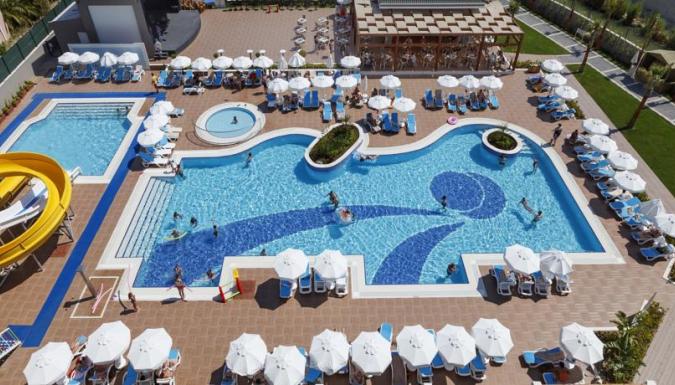 Приятный семейный отель в оживленном районе курорта, в пешей доступности — кафе, магазины, рестораны, рынки. На территории — несколько бассейнов, в течение дня проводятся спортивные и развлекательные программы.