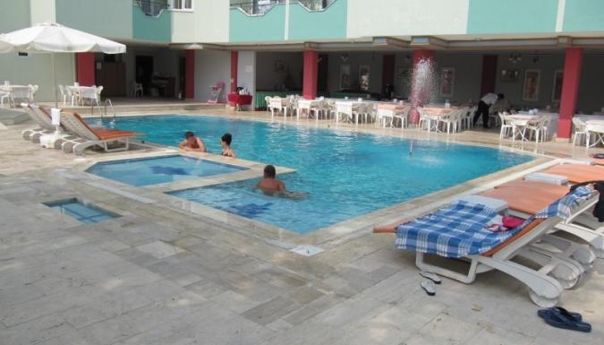 Отель в поселке Махмутлар, через дорогу от пляжа, проход по подземному переходу. Большой бассейн с детской зоной и водной горкой, анимационные программы. Недалеко от отеля работают кафе, магазины, рестораны.